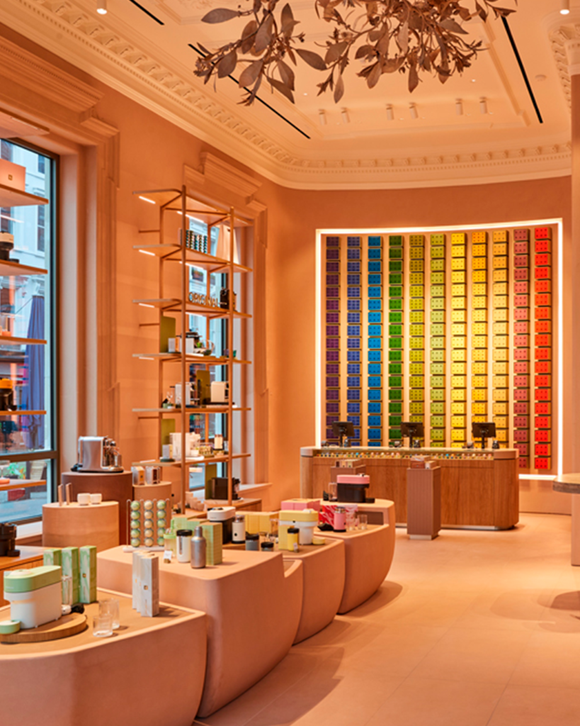 Essa loja foi criada como parte do reposicionamento global da Nespresso, e se propõe a ser um verdadeiro templo do café. Um lugar onde degustações, masterclasses, personalização de embalagens, coffee mixology e um bar secreto convivem em um fluxo contínuo de descobertas, ao mesmo tempo em que reforçam a marca como referência global em sofisticação, inovação e sustentabilidade.